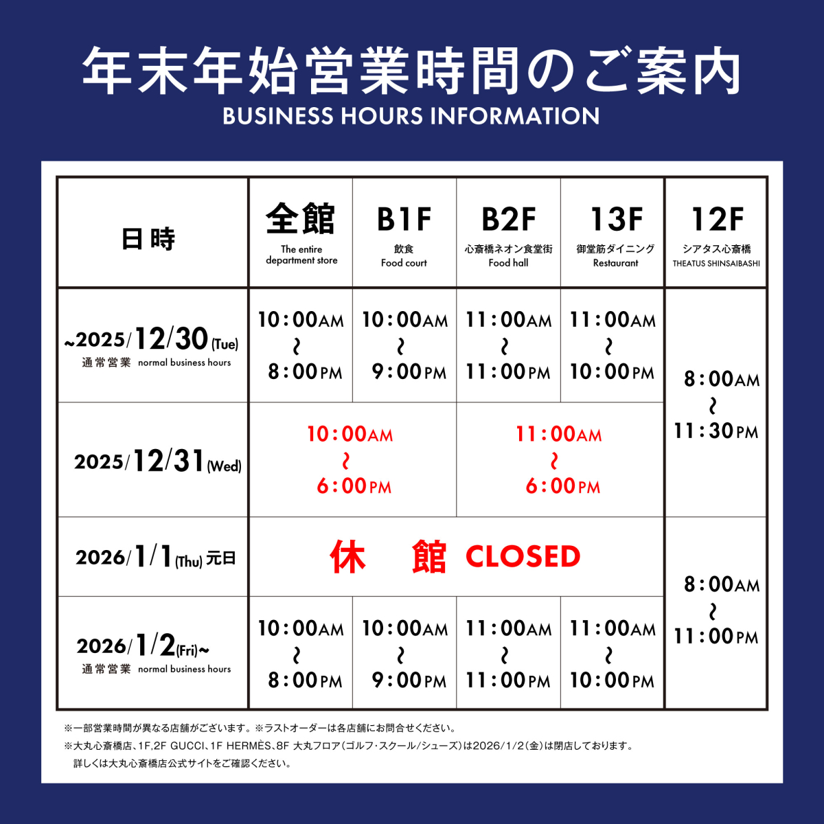 ※大丸心斎橋店は2026年1月2日は休館となります。