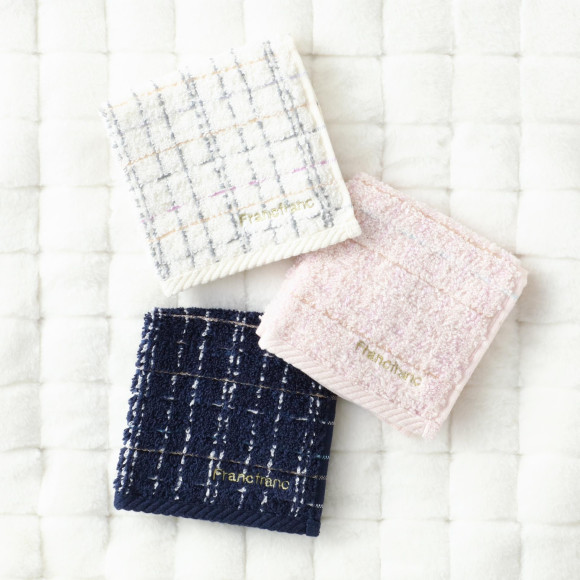 ツイードのようなデザインがかわいい抗菌防臭機能を施したハンカチタオルです。無撚糸のパイルとシャーリングの組み合わせで肌触りよくお使いいただけます。