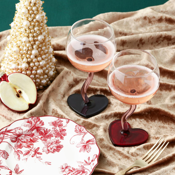 ホリデーにもぴったりな、ハートモチーフがトレンド感いっぱいのワイングラスです♡